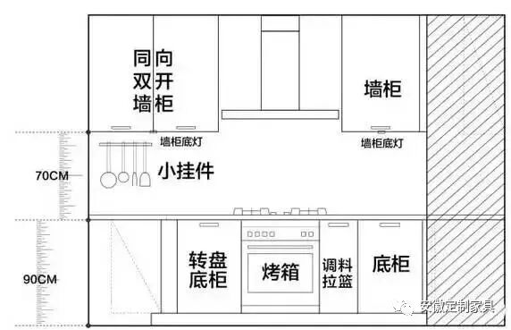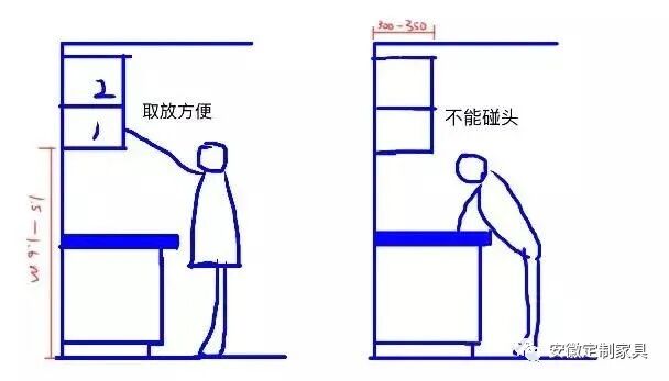 说完台面,来聊聊吊柜的高度。根据中国平层房子的层高,一般吊柜在