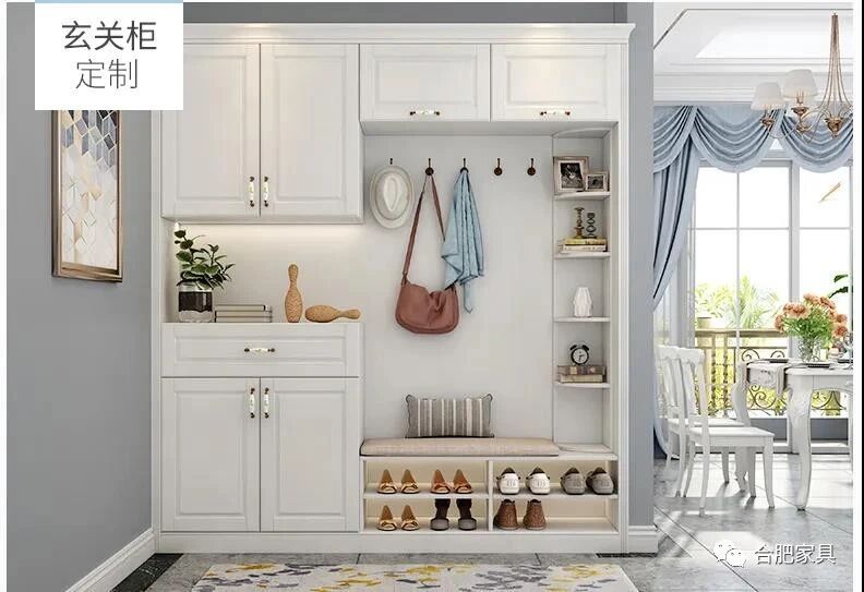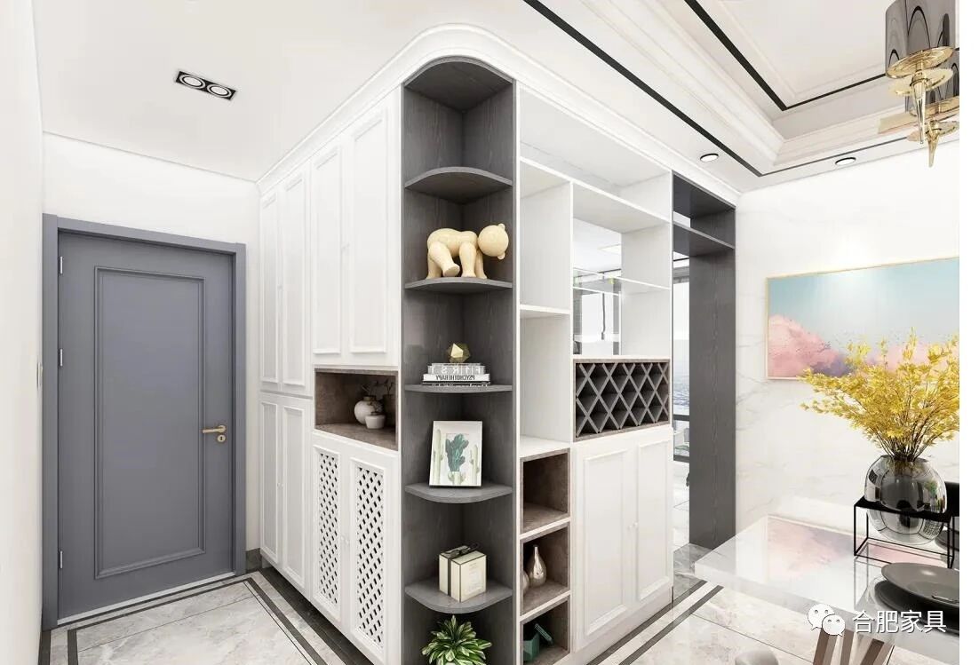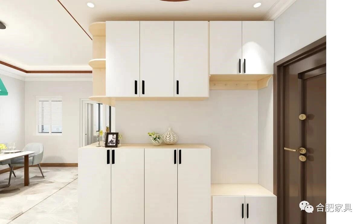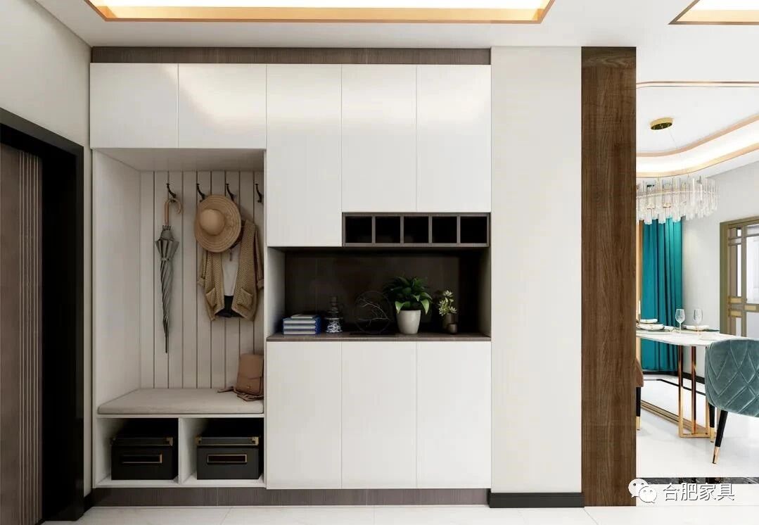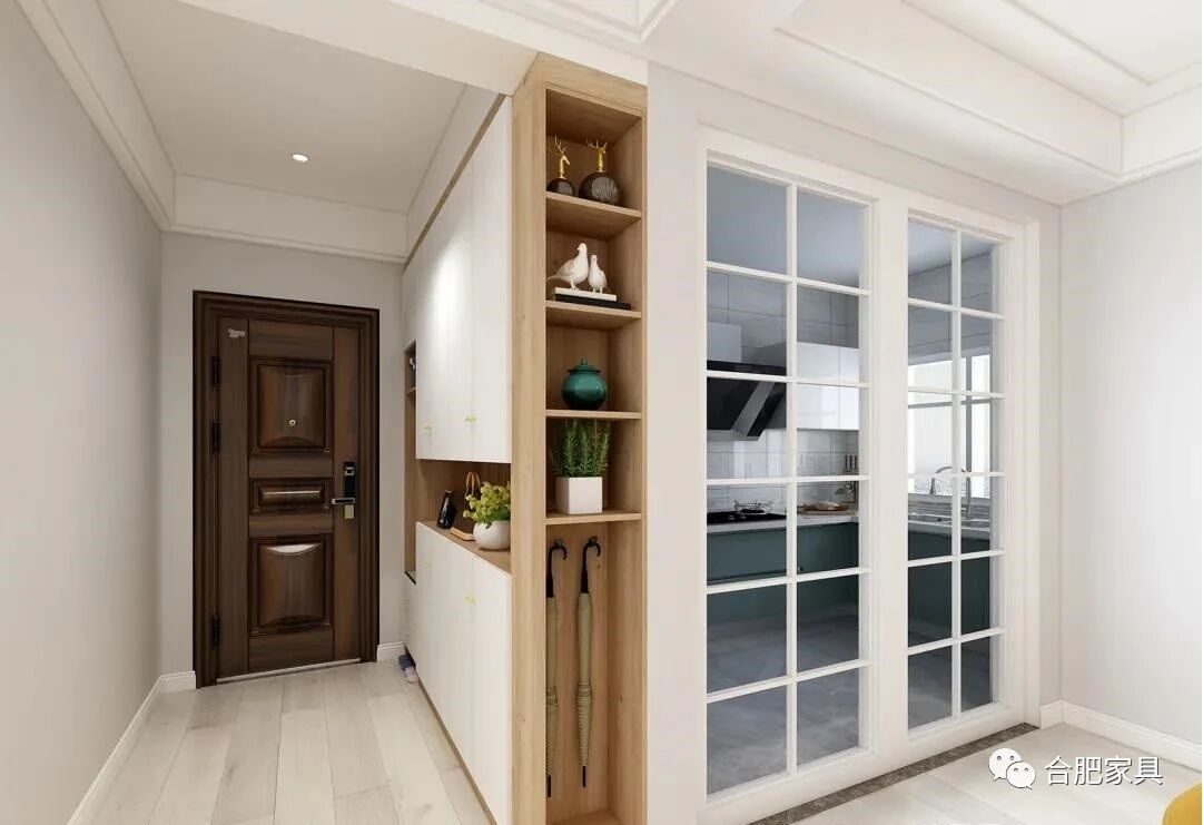 入门过道设计玄关柜,必须保留至少1m宽的距离方便进出,所以玄关柜的净深不能做太大。