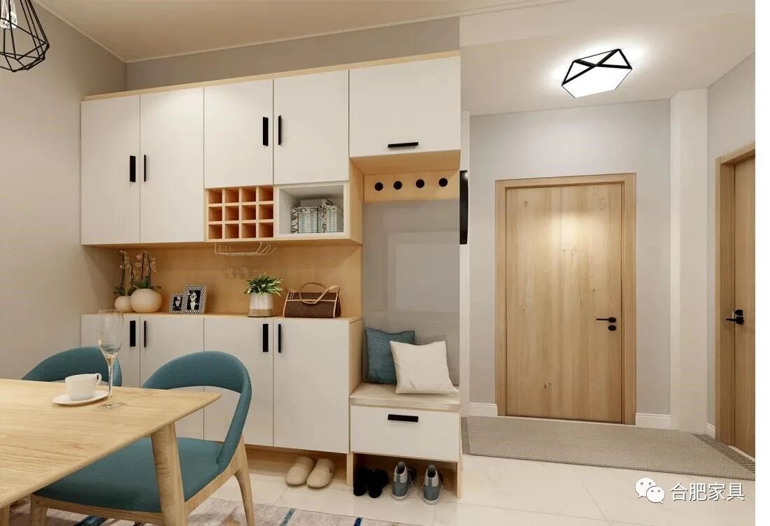 如果小户型玄关空间小,将玄关柜与餐边柜或电视柜一体化设计做个组合柜也不错。