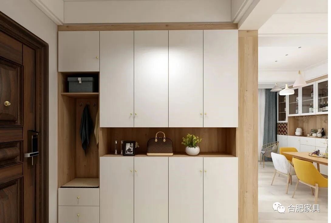 一进门就是客厅的,没个玄关柜是不行的,鞋子整理不好,进门就尴尬!平底靠边设计玄关柜,出门上班回来开门换鞋停一会,放下包,脱下外套大衣挂起,换双卧鞋,这才是回家的感觉,卸下工作的疲惫,回家放松心情!