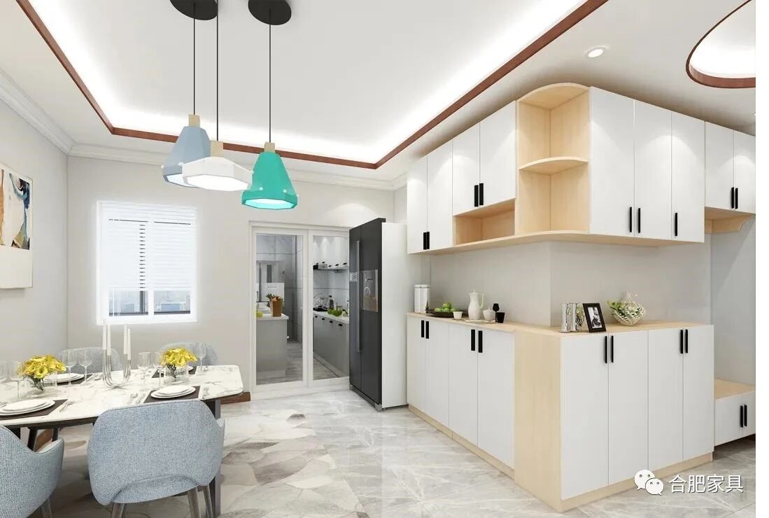 或者和其他柜体组合设计,比如是玄关柜延伸设计餐厅与厨房之间的隔断柜,侧边开放式处理线条美观,且取物更轻松。